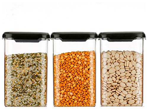 2Mech Hermetic Plastic Sq. Container Set for Kitchen Storage – 1100ml Containers | Unbreakable & Air-Tight Design | Container & Containers Set (Set of 6 Black )