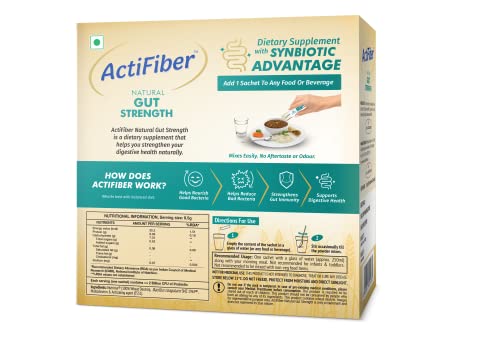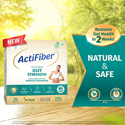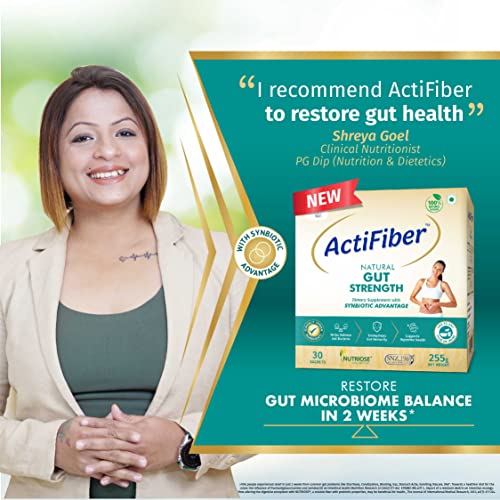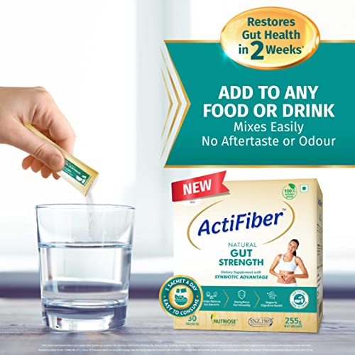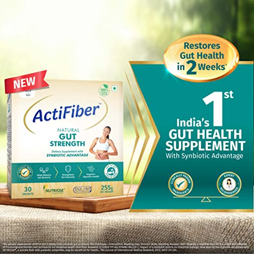 Actifiber Natural Gut Strength | Synbiotic Advantage | Prebiotic and Probiotic Supplement to help Restore Gut Health | Gut Health Supplement for Digestive problems, Gas, Constipation | (1 X 255 Gms Pack of 30 Sachets)