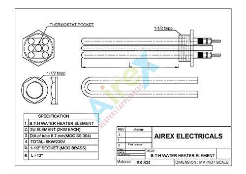 Airex Stainless Steel Industrial Triple Pipe Immersion Water Heater/Boiler (1.5″) (6000W)Can be Designed as per your requirment.