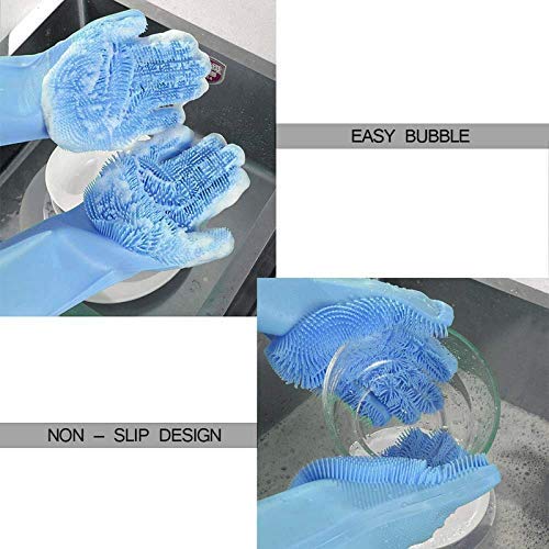Alciono Magic Silicone Dishwashing Cleaning Gloves for kitchen washing with Scrubber for Washing Dish ,Kitchen utensil- Assorted color (Pack of 1)