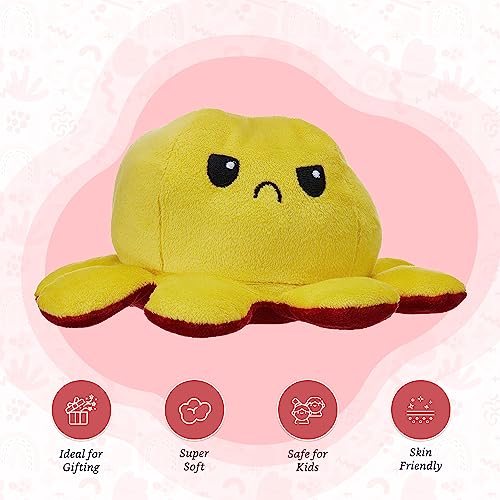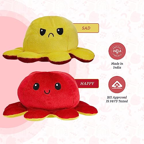 Amazon Brand – Jam & Honey Reversible Octopus, Plush/Soft Toy for Boys, Girls and Kids, Super-Soft, Safe, Great Birthday Gift (Red and Yellow, 18 cm)