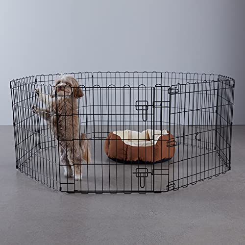 AmazonBasics Foldable Metal Pet Dog Exercise Fence Pen With Gate – 60 x 60 x 24 Inches, Extra Small
