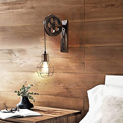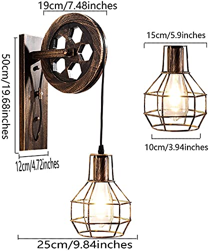 ANZZSS Iron Wheel Shape Fixture Industrial Mid Retro Lift Pulley Wall Hanging Light Lamp (Bronze , Brown )