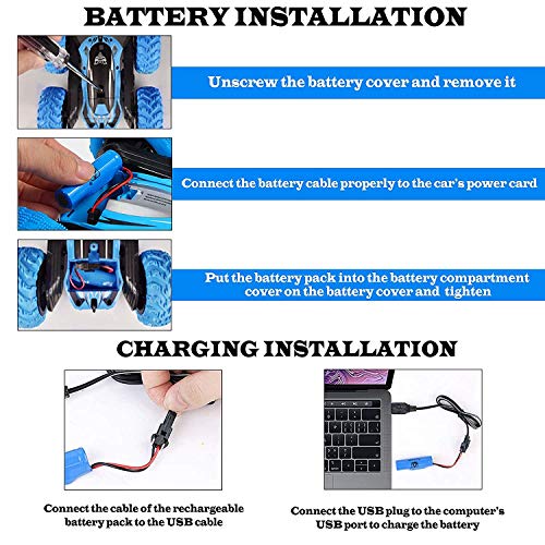 OFF ROAD CAR: Equipped with powerful motors and 4WD, this RC stunt car can speed up to 5 – 7 km/h and do quick turning and rotating action. 2.4GHz technology to support its high speed.