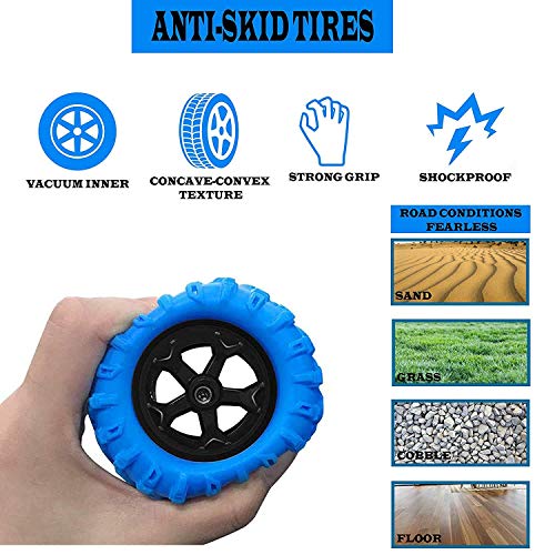 ANTI SKID TIRES: Durable flexible wheel rubber tires with vacuum, concave-convex texture, anti -shock ,strong grip allows it to drive in high speed on all kinds of terrains.ANTI SKID TIRES: Durable flexible wheel rubber tires with vacuum, concave-convex texture, anti -shock ,strong grip allows it to drive in high speed on all kinds of terrains.