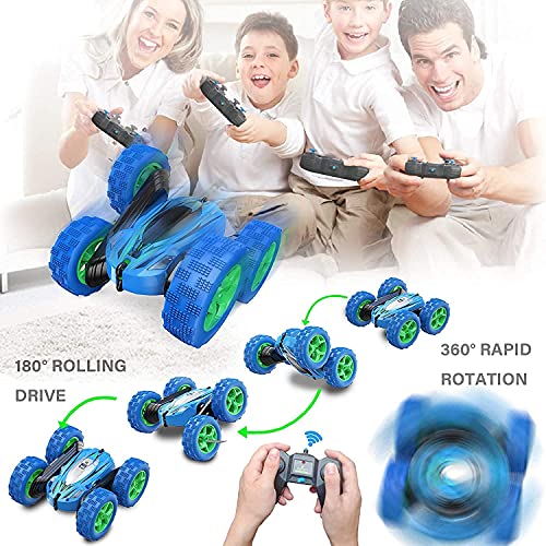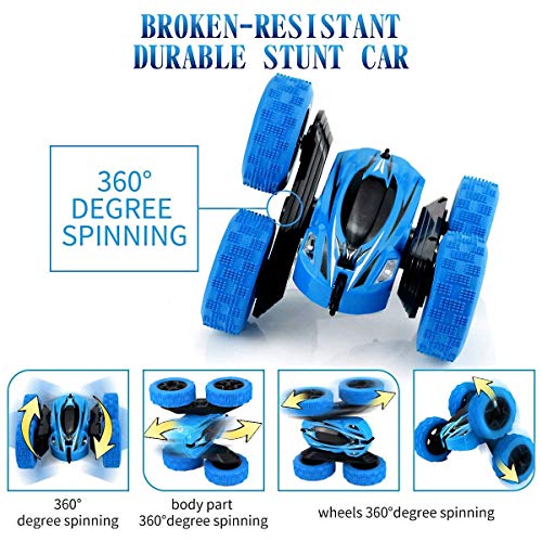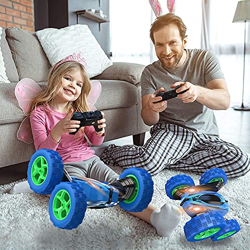 Ascetic Double Sided 360 Degree Remote Control Rechargeable Stunt Car Toy with LED Lights for Kids (Multicolor)