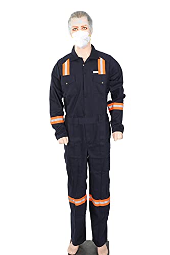 BAYA SAFE Cotton Coverall | Boiler Suit | DUNGREES | High Visibility Clothing with Reflector | Industrial Protective Clothing |Navy Blue