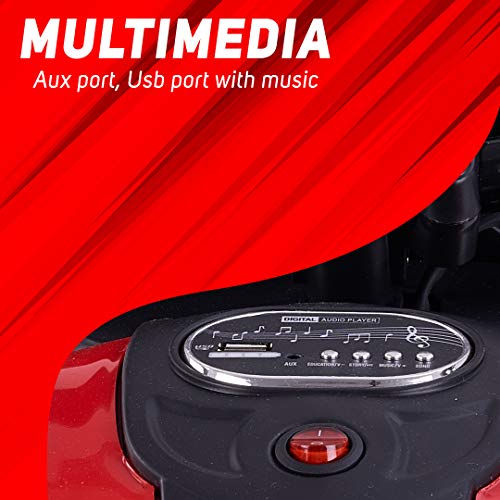 Multi-functions: 1. By pressing the built-in musical and horn button, your baby can listen to the music while riding. 2. Working headlights make it more realistic car head. 3. Equipped with on/off and forward/backward switches for easy ride. 4. Training wheels. 5. Mono suspension system