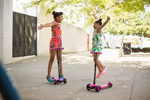 FUN AND SHINING, when the three wheels are spinning, the lights flashing up!! Get brighter when the faster go, making their scooter unique and have a lot of fun while playing.