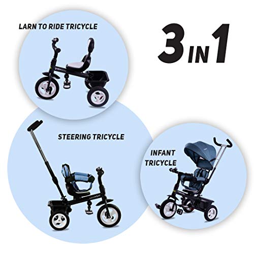 EXTENDABLE CANOPY: Smart Tricycle 4 in 1 with an extendable canopy to protect your baby from the sun.