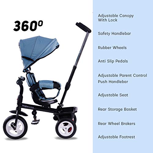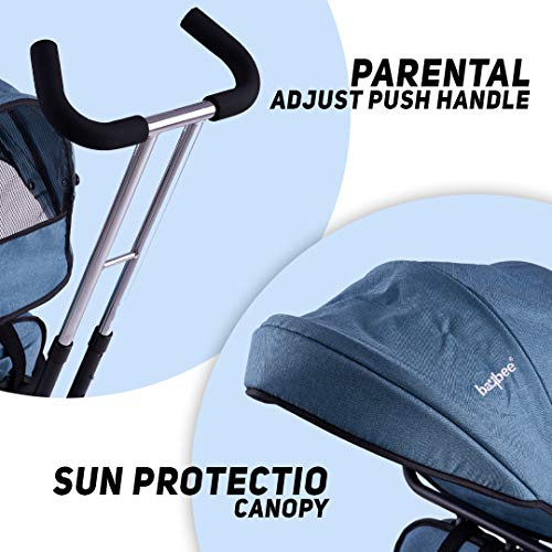 Baybee Mario Sportz – The Stylish Plug and Play Baby Tricycle with Canopy and Parent Control with Reversible Seat ( (Now with Rubber Wheels)