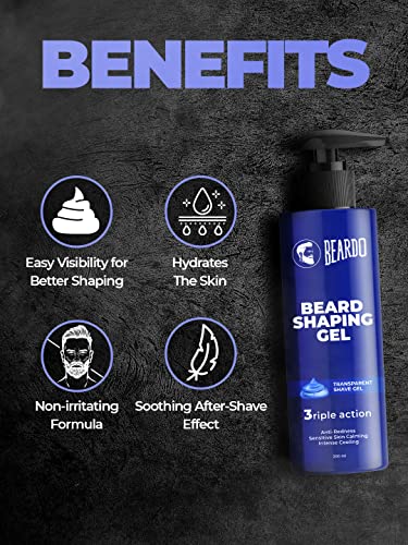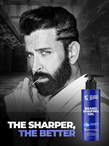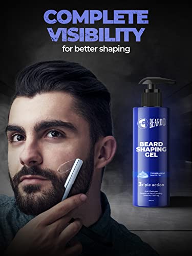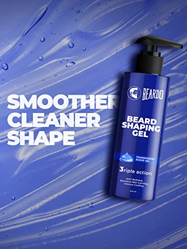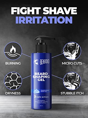 Beardo 3ripal Action Beard Shaping Transparent Shave Gel for Men | Anti-Redness | Sensitive Skin Calming | Intense Cooling | 200 ml