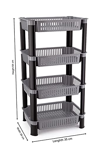 Biltoxi Kitchen Racks Plastic, Vegetable Basket Stand, Plastic Rack Office, Fruits Onion Stand for Kitchen (Grey Color, 4 Layer)