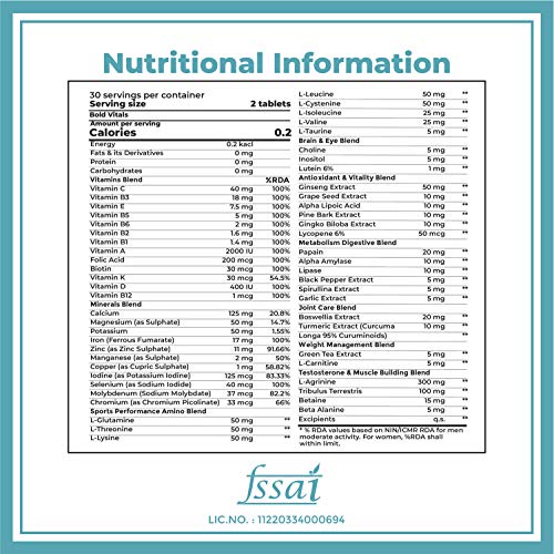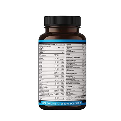 Boldfit Sports multivitamin supplements for men enriched with over 55 Vitamins, Minerals, Amino Acids & Anti oxidants for Immunity, Minerals for Energy, bodybuilding & Athletes (60 Veg Tablets)