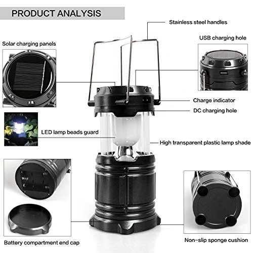 BRAND ZIGGY PORTABLE FOLDING LIGHT HAS A USB CHARGING PORT CAN CHARGE WITH SOLAR POWER OR ELECTRICITY NEATLY FOLDS, AND STARTS AUTOMATICALLY ON UNFOLDING IT Retractable Solar Camping Lantern Lamp,6 LED Solar Camping lamp Outdoor Lighting Portable Camp Tent Lamp Rechargeable lantern 6-LED Portable Camping Lantern Outdoor Light Equipment with USB port LED Solar Camping Lights outdoor 4V/12W USB portable Folding tent lamp emergency lights Utilized the power of the sun, Solar Camping Lantern Lamp provides unique night time lighting. Suitable for border lighting or on your next camping trip, the Solar Camping Lantern Lamp is a versatile and environmentally friendly way to light up your evenings! Feature: Unique Stretch switch, pull up is switch-on, Press down is switch-off, easy to use With two flexible handle for easy to hang and carry Capable of standing up securely on a flat surface to serve as a candle Solar High-Quality rechargeable.