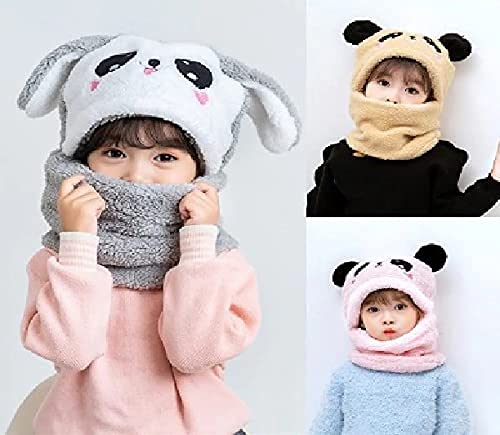 BRATS N BEAUTY® – Long Ear Rabbit Design Balaclava/Ski Cap Winter Warm Scarf Set (Attached)/Beanie for Boy/Girl (Plush Valvet Thicken) – Grey Color 5-6 Year