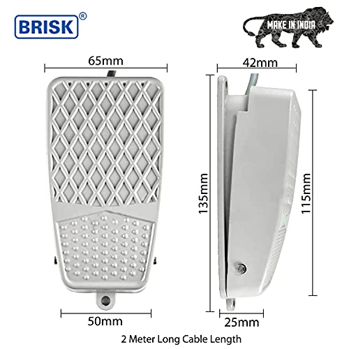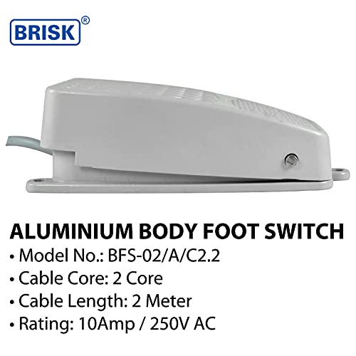 BRISK Heavy Duty Industrial Standard Foot Switch SPST-NO, 2 Core Wire, 2 Meter Long Cable 10Amp / 250V AC Electric Pedal Momentary Foot Pedal Switch Aluminium Body Pack of 1 No’s (Grey)