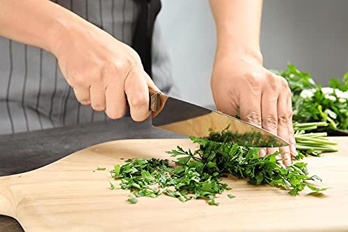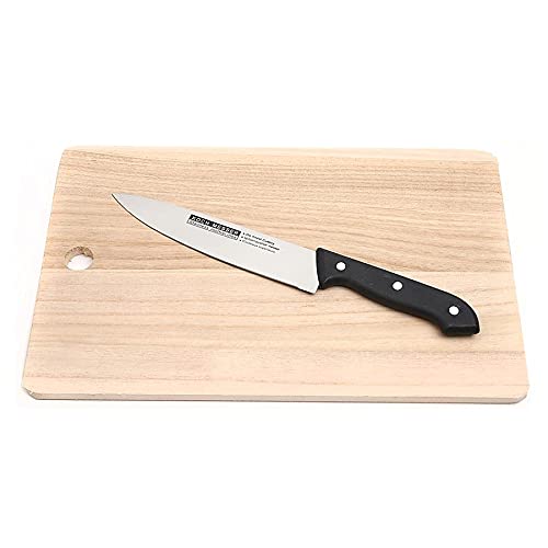 BRITSPEAR Wood Chopping Reducing Board with Knife Set and Scissor, 6 Piece Stainless Metal Knives Set and Scissor, Kitchen Knife Units (Wood)