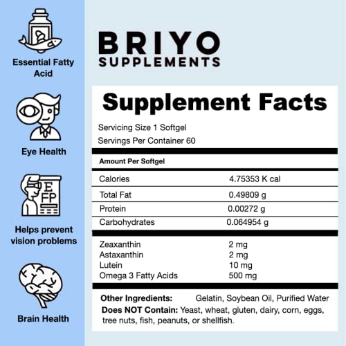Briyosis OptiVital – Lutein, Zeaxanthin, Astaxanthin And Omega 3 Fatty Acid Supplement For Eye Health And Nutrition