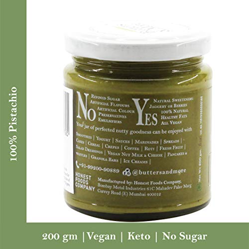 Butters & More Vegan Natural Pistachio Butter (200G) Single Ingredient & Unsweetened Premium Nut Butter. Keto & Diabetic Friendly.