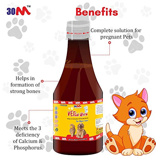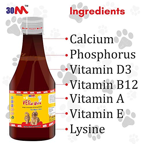 Calcium Syrup Tonic for dogs puppies cats – Calcium, Phosphorus, Vitamin D3, Vitamin B12, Vitamin A, Vitamin E, Lysine – Vet Cal Ultra (Pack of 2)
