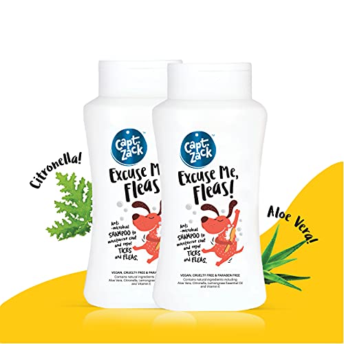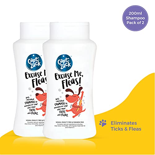 Captain Zack Excuse Me, Fleas – Tick & Flea Repellent Dog Shampoo, Prevents Skin Irritation – Paraben Free, No Artificial Fragrance & Cruelty Free 200ml Each- Pack of 2