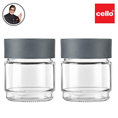 Cello Modustack Glassy Storage Jar, Stackable, Clear,Set of two, 500ml Every, Gray, Small