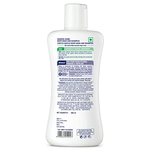 Chicco Baby Moments Gentle Body Wash and Shampoo for Tear-Free Bath time, Suitable for Baby’s Gentle Skin and Soft Hair, No Phenoxyethanol and Parabens (200ml)
