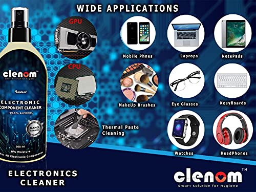 Clenom Powerful Electronics Cleaner ISOPROPYLE Alcohol 99.9% (IPA) Premium Laboratory Grade ( 200ml Pack of 1 ) CPU,GPU,Thermal Paste,Mother boards,Laptops,Mobiles All Purpose Cleaner.
