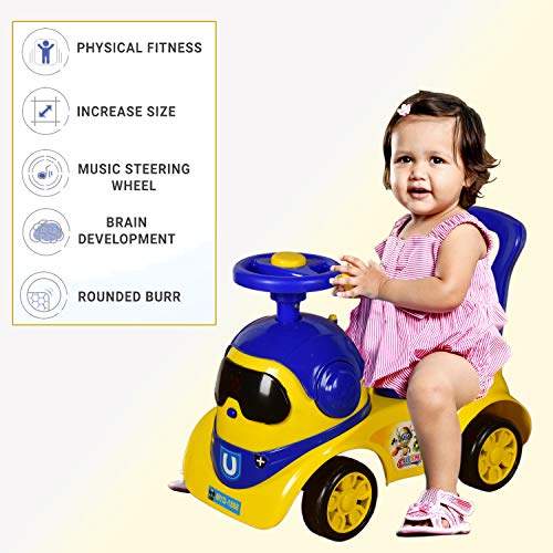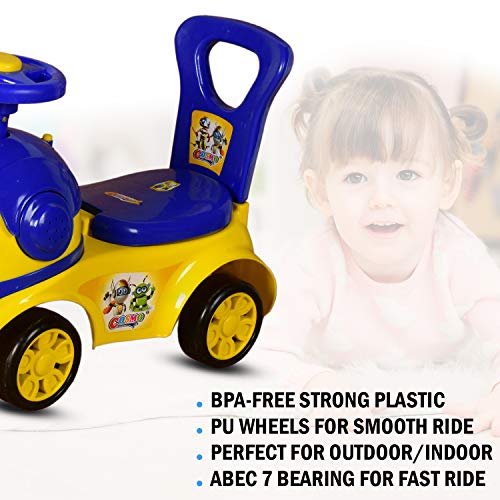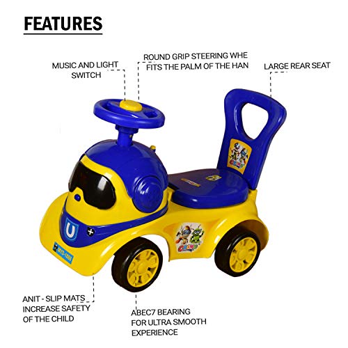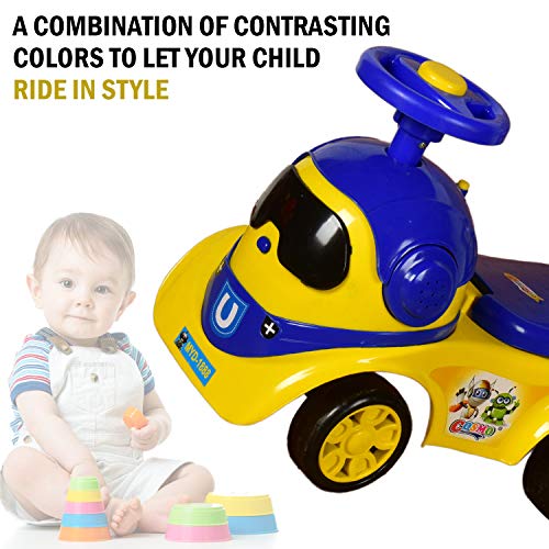 Cosmo Robot Kids Ride On Car with Under Seat Storage, Music & Light for for Baby Kids Boys and Girls (1 Year to 4 Years, Yellow/Blue)