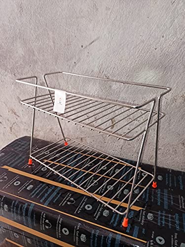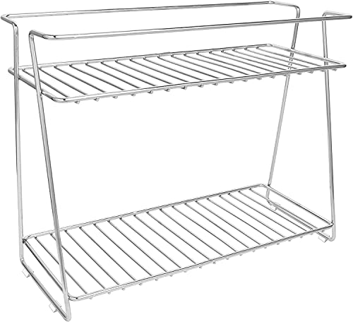 CR18 COLLECTION Stainless Steel Spice 2-Tier Trolley Container Organizer Organiser/Basket for Boxes Utensils Dishes Plates for Home (Multipurpose Kitchen Storage Shelf Shelves Holder Stand Rack)