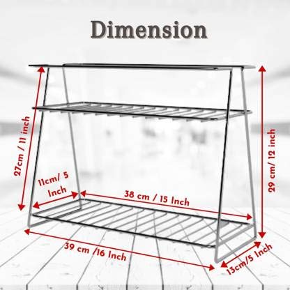 MATERIAL: Constructed of durable steel with a gleaming chrome finish, the stylish two-shelf shelving unit offers the best of both rugged reliability and modern appeal!