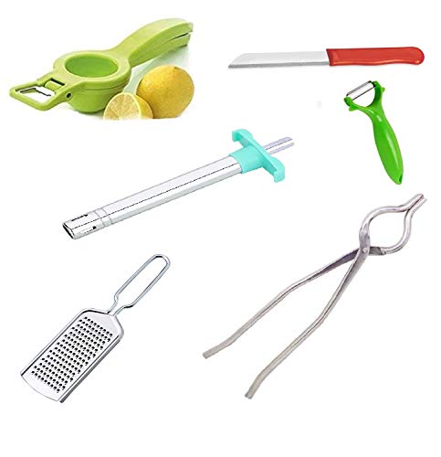 Big Kitchen Set combo. – ★ Brand: Craftale ★ Package Content: 14 in 1 Package contain : 1 Pc of power free blender, 1 Pc of clever cutter, 1 Pc of wooden masher, 1 Pc of egg cutter, 1 Pc of vegetable peeler, 1 Pc of lemon squeezer, 1 Pc of kitchen tong, 1 Pc of tea strainer, 1 Pc of knife , 1 Pc of Y Shape Peeler, 1 Pc of lighter, 1 Pc of grater, 1 Pc of hot mat, 1 Pc of microfiber cloth ★ Material: Plastic ★ Product Description: Hand Blender for Your Kitchen Tool Stainless Steel Rust Free Blade – You can get creative with a hand blender – explore those new recipes for soups, smoothies, sauces. Compared to a traditional jug blender, they can be a lot more convenient too: you simply stick it into your pan and away you go. Hand blenders take up less space in your kitchen, create less washing up and there’s minimal food wastage. 2 in 1 Kitchen Vegetable Smart Cutter – Just think how many kitchen knives and cutlery this single tool can replace you get the idea. Slicing, cutting and chopping is made easier with this great combination of food chopper and cutting board Stainless Steel Pav Bhaji Masher with wooden handle – Potato mashing was such a daunting task in the past for everyone who had to use the highly inefficient vertical handled potato masher. Stainless Steel Kitchen Cooking Tong: Made of stainless steel the tongs are hardy and long lasting. This beautiful designed smart kitchen with Two holdes makes a great addition to your range of bar accessories. The sleek handles ensure a good grip, while the wide and flat heads are ideally designed can be used for holding any hot utensil easily. Solid Stainless Steel tips offer a firm grip while Lifting and Turning small and medium sized pots, pans, utensils and other cookware.
