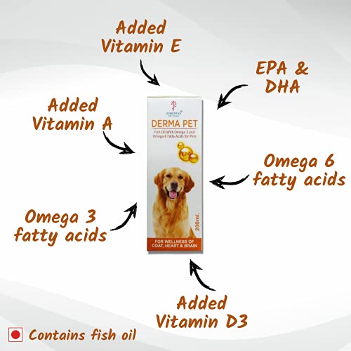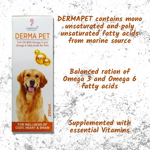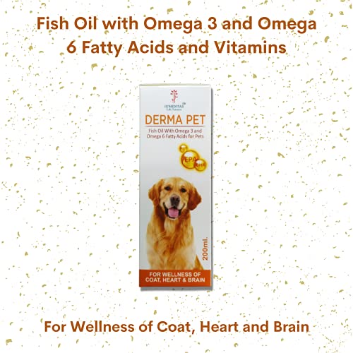 DERMAPET – Fish Oil with Omega 3, Omega 6 and Nutritional vitamins for Pets – for Wellness of Coat Coronary heart and Mind – 200 ml