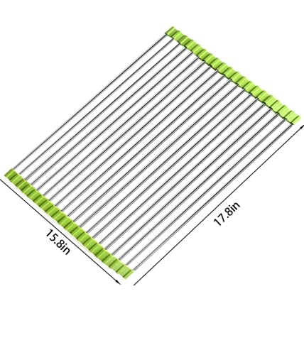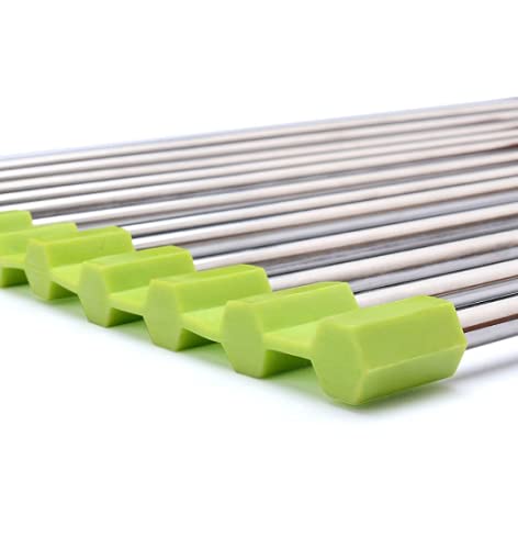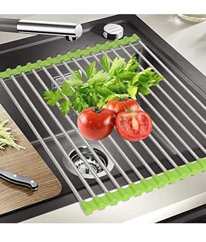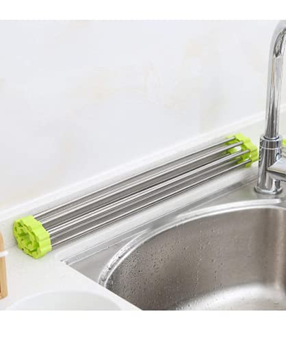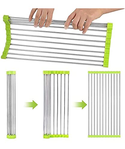 DevDeep Stainless Steel Foldable/Roll-Up Over Sink Fruit Vegetable Utensils Drying Rack Dish Drainer Mat for Kitchen 46.5 x 22.5 cm