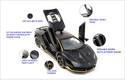 divine man Lamborgini Die-Cast 4 Wheel Drive Metal Car Pull Back with Openable Doors, Light, Trunk, and Music for Kids Above 4 Years