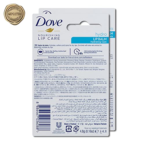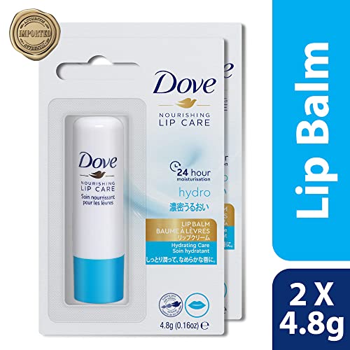 Dove Hydro Nourishing Lip Care with with aloe vera oil and vitamin E,Long lasting Lip Balm,24 hours Hydration, Imported,4.8gm,PO2, Blue