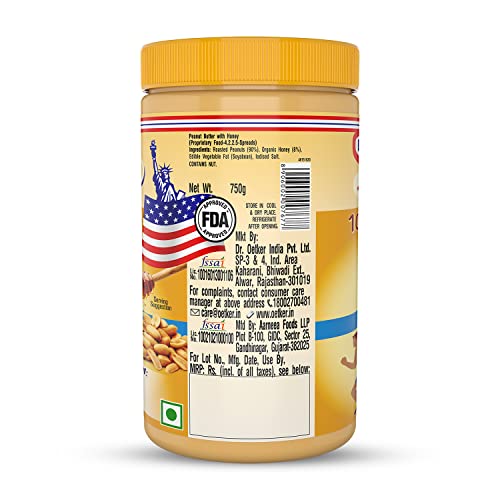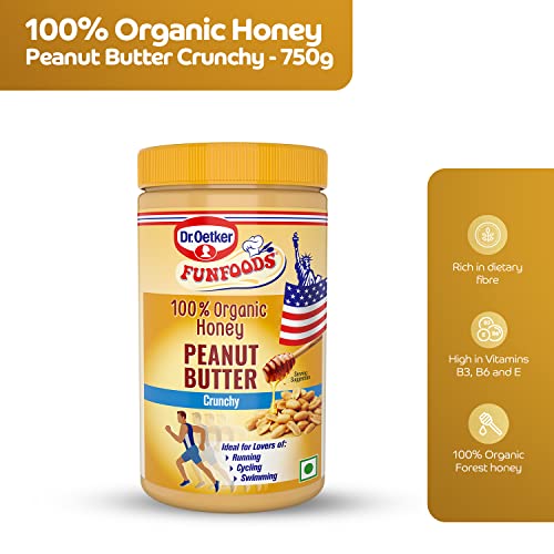 Dr. Oetker FunFoods 100% Organic Honey Peanut Butter Crunchy with High Protein | Rich in Dietary Fiber | High in Vitamin E, B3 and B6 | Trans Fat Free – 750 gm