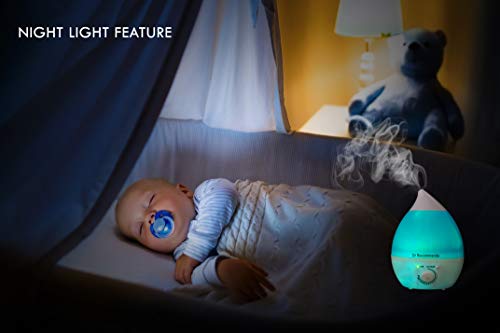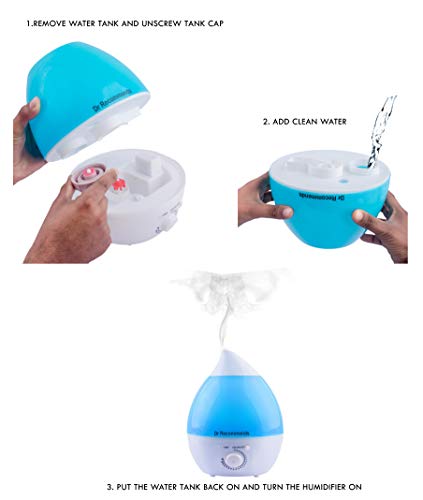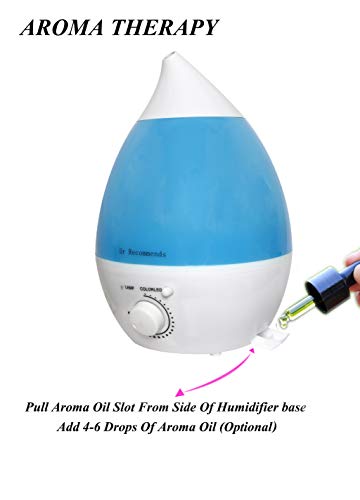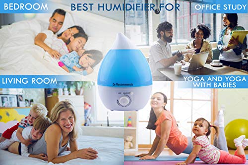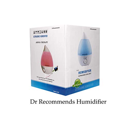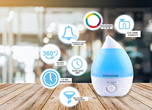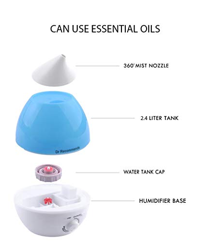 Dr Recommends Ultrasonic Cool Mist Humidifier For Room, Essential Aroma Oil Diffuser for Bedroom Living Room Baby Office- Night Light, Large 2.4 L Water Tank, Quiet, Auto Shut Off, Blue