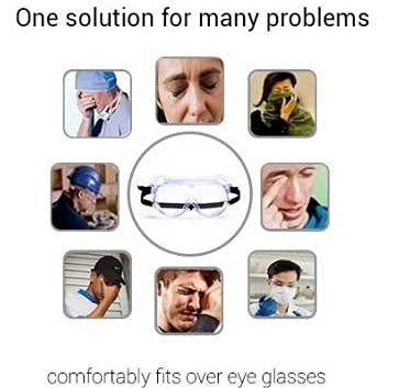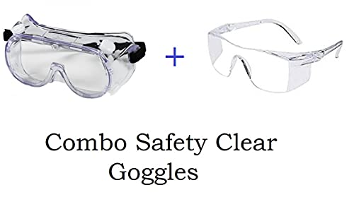 Ekon Combo Of Protective Safety Adjustable Strap & Clear Lens Wide-Vision Eye Protection Transparent Goggles Eyewear For Men, Women Unisex Industrial Work Home multipurpose