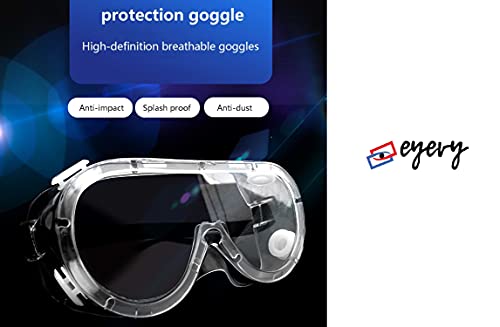 Eyevy Eye Protection Goggles for Safety | Wide Vision Clear Glasses | Anti fog lens Protects from Chemicals | Scratch Resistant Strong Elastic frame – For Medical Labs Industrial & Outdoors