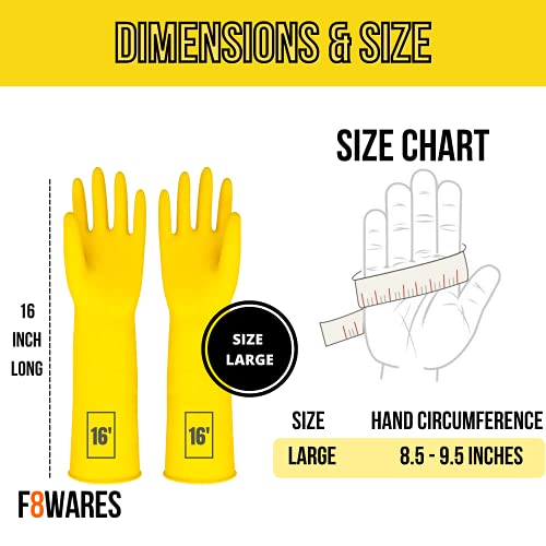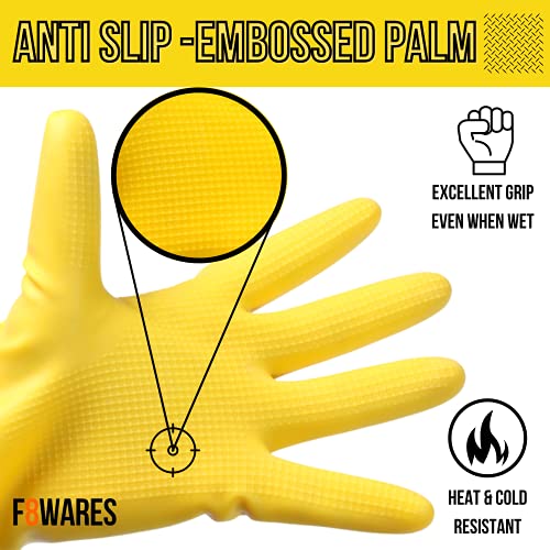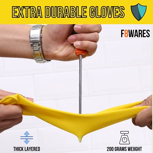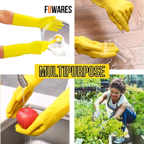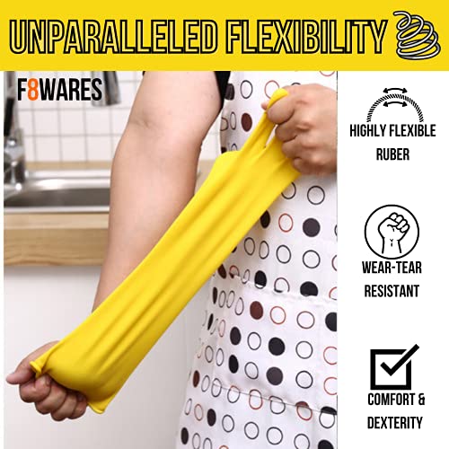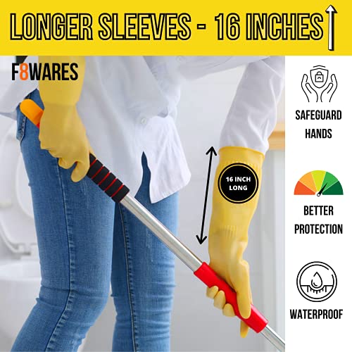 F8WARES 16inch Washable Heavy-duty Reusable Dishwashing Kitchen Industrial Gardening Hand Latex Rubber Cleansing Gloves For Males Ladies 16 Inches Lengthy Pack ( Yellow , Massive )