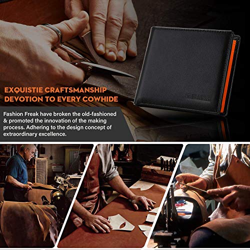 Fashion Freak Leather Wallet For Men – RFID Blocking Wallet – With Coin Pocket And Credit Card Holders (BLACK TAN)