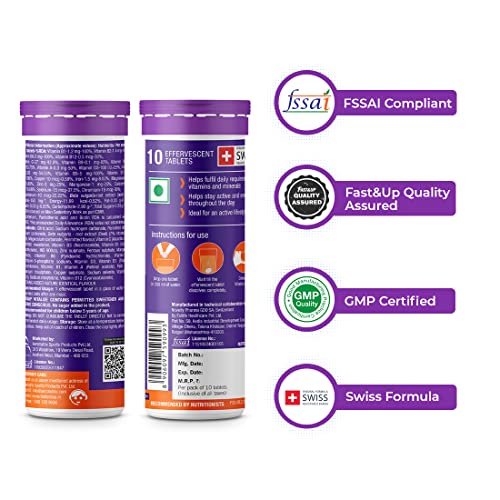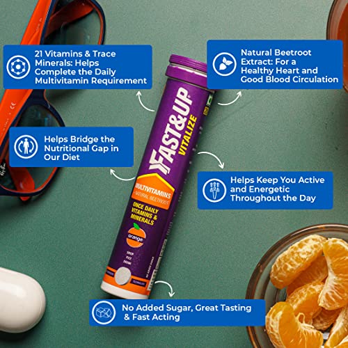 Fast&Up Vitalize – Immunity Essential Multivitamin For Men & Women (10 Effervescent Tablets – Orange Flavor) – 21 Vital Vitamins & Minerals with Vitamin C, D & Zinc For Daily Health & Immunity