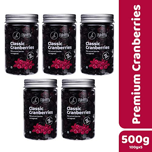 Flyberry Gourmet Dried Cranberries | 100% Natural | No Added Sugar | SugarFree, Dietary Fibre & No Gluten | Sugar Less | Vegan & Non GMO| 500g (Pack of 5, 100g Each) Cranberries