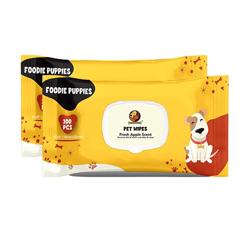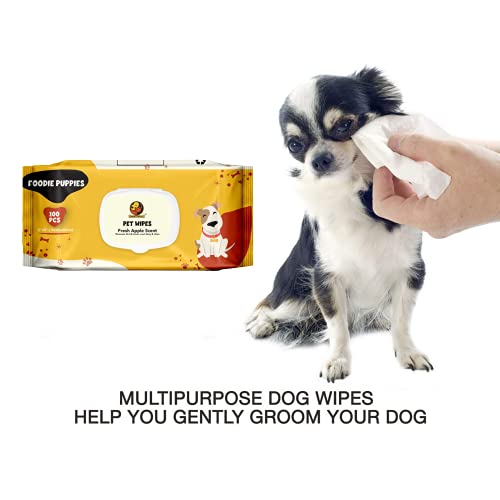 Foodie Puppies Wet Pet Wipes for Dogs, Puppies & Pets with Fresh Apple Scent 6″x 8″ – 100 Wipes (Pack of 2)