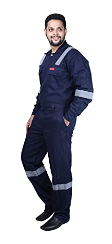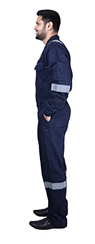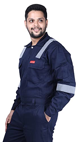 FRENCH TERRAIN 100% Cotton Males’s Industrial work put on Coverall (Boiler Swimsuit/Dungarees) fabricated from Superior High quality 210 GSM Shrinkage managed Cloth with good color Fastness, sewn on Japanese Juki machines guaranteeing highest high quality of material and stitching for rugged use. This top quality Coverall has reflective tapes on legs and sleeves and on shoulders for evening / low gentle visibility giving further security. There is top of the range two manner YKK zipper with auto lock used for entrance opening for consolation and rugged use. Additionally there are bartacks on all stress factors of the coverall to make sure that the stitches does not open from essential factors. There are two chest pockets with flaps, two facet pockets, two again pockets and one instrument pocket on thigh for carrying instruments in addition to private belongings. Again elastic on waist is given for added consolation to swimsuit every kind of physique construction.