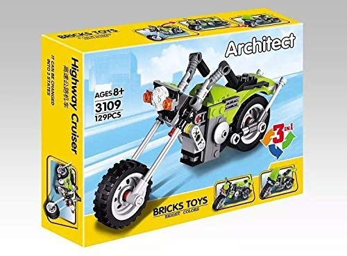 FunBlast Architect Series 3 in 1 Harley Cruiser Building Block Brick Educational DIY Toys for Kids – 129 Brick Pieces (Multicolor)