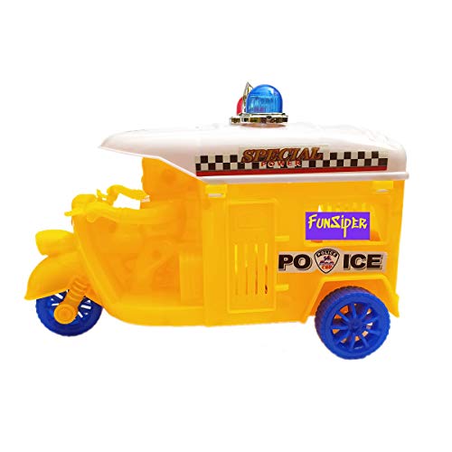 FunSiper Branded Plastics toy Motorcycle & Auto Rickshaw . Size – L: 21 CM | W: 10 CM | H: 5 CM Make from superior quality of plastic material. Additionally, as the plastic parts have no sharp edges, the risk of kids getting hurt while playing with this toy is minimal. Children will have fun playing with this attractive miniature toy car. we did not send you a toy we send you a toy with fun for your children.