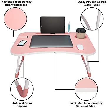 GBK Portable Multifunction Foldable Bed Study/Laptop Table/Lapdesk with Tablet Slot and Cup Holder for Children, Office, Gaming, Home Gold (Pink)